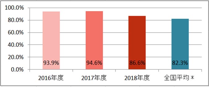 2023 年度の平均値は21.1 %であり、前年度の27.6%より低減しましたが、残念ながら目標値および全国平均値を下回ることはできませんでした。
