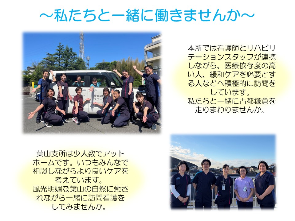 現在当訪問看護ステーションでは一緒に訪問看護を行って頂ける訪問看護師を募集しております。