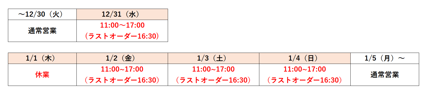 年末年始のレストラン・カフェの営業時間については下記の通りです。(ドトール・ダイニング湘鎌)