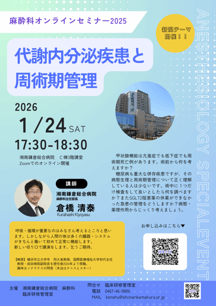 麻酔科セミナー開催のお知らせ