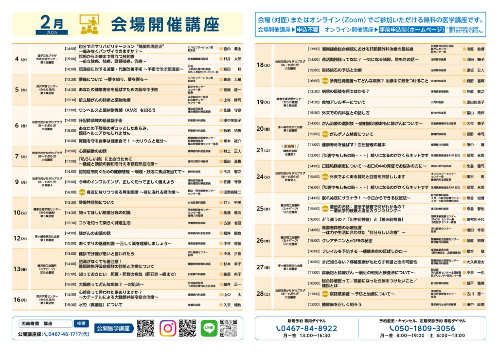 2026年 2月度 公開医学講座 開催のお知らせ