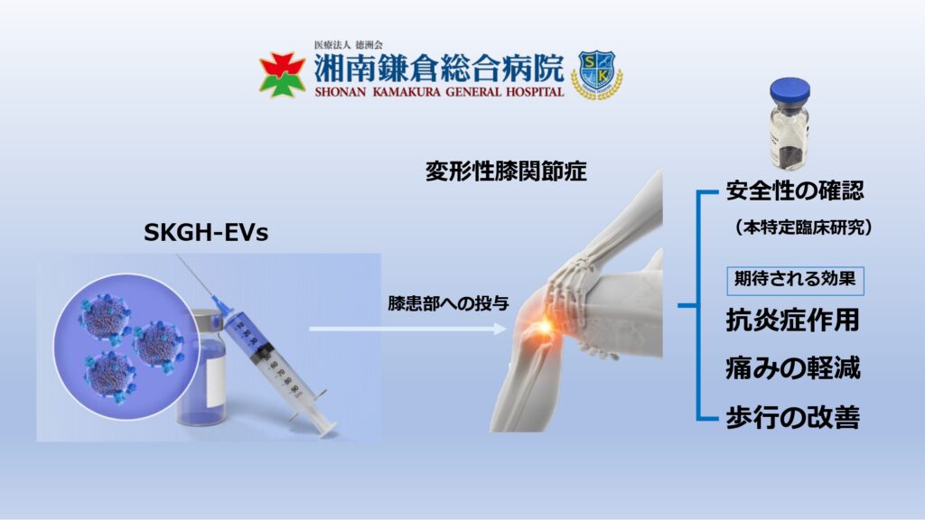 医療法人徳洲会湘南鎌倉総合病院(神奈川県・鎌倉市)は、変形性膝関節症への細胞外⼩胞※投与に関する臨床研究を開始しました。高純度の製剤を病院内で製造して、安⼼、安全かつ有効な新規医療の開発を⽬指します。
