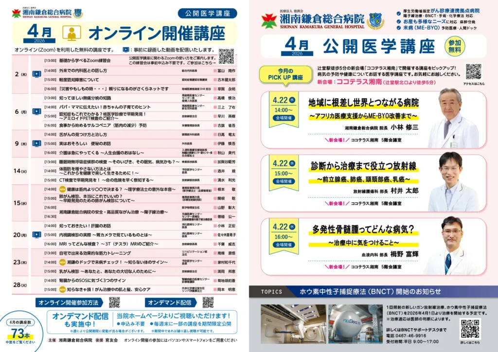 2026年 4月度 公開医学講座 開催のお知らせ
